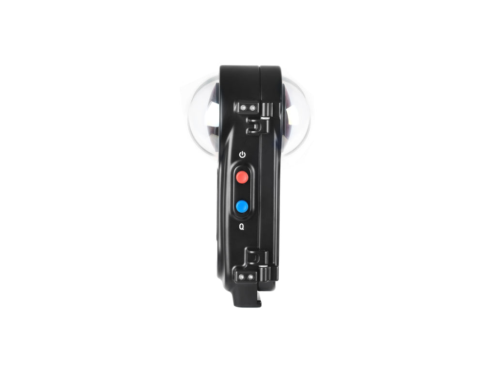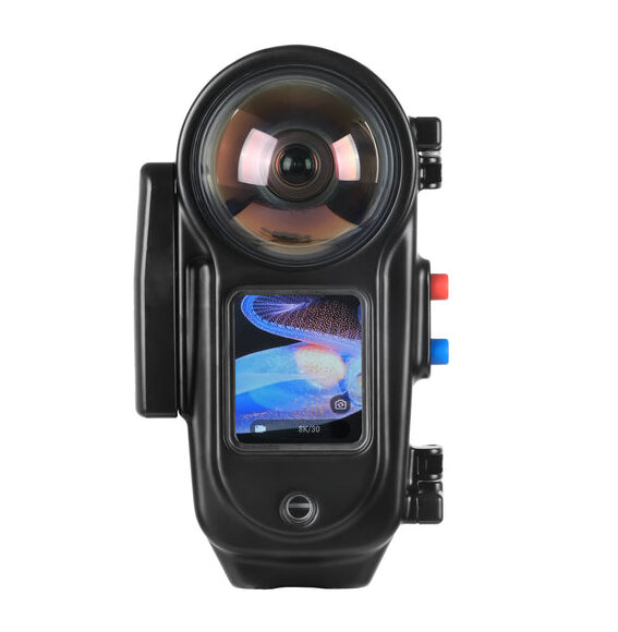 Fabricada en una robusta aleación de aluminio con anodizado duro, esta carcasa estanca permite llevar las capacidades de la Insta360 X5 hasta los 100 metros de profundidad. Incorpora ópticas de precisión con tres elementos en dos grupos por lente, ofreciendo un ángulo de visión de 190° y una nitidez excepcional de borde a borde.