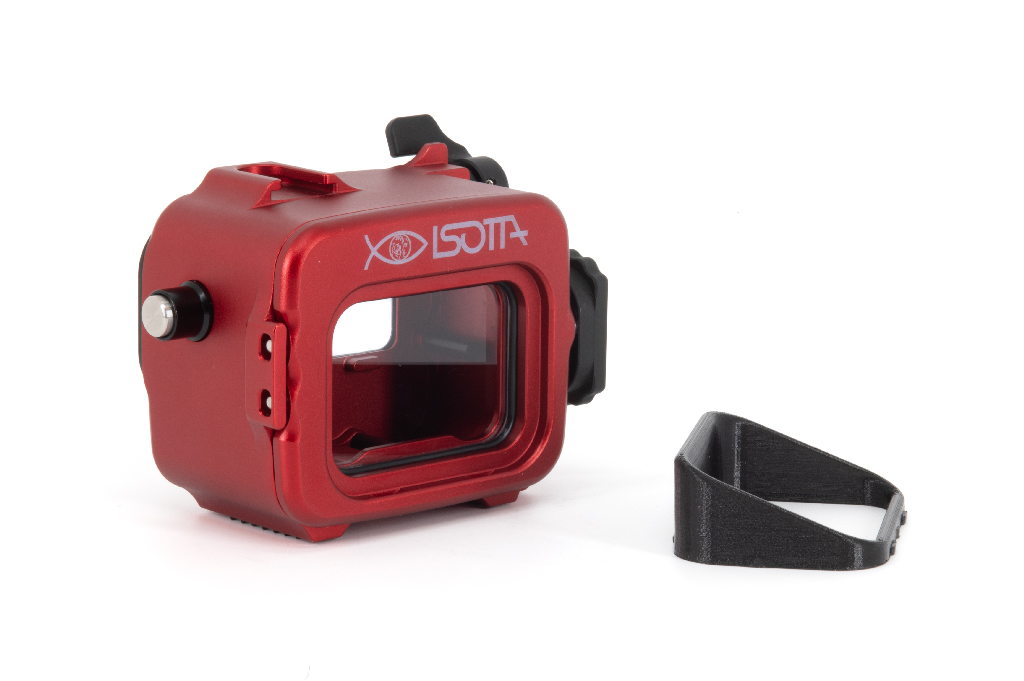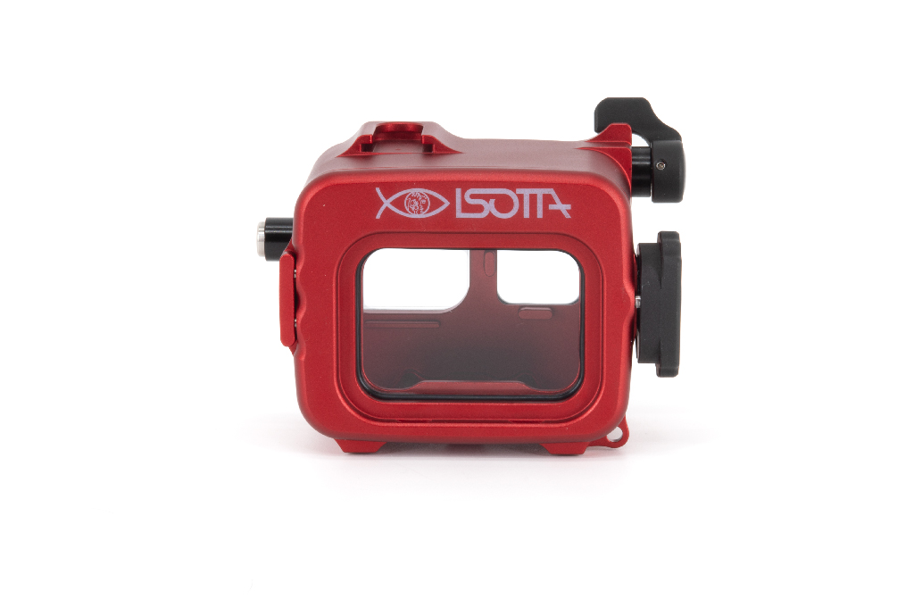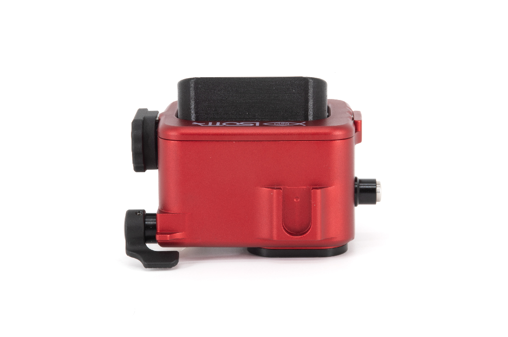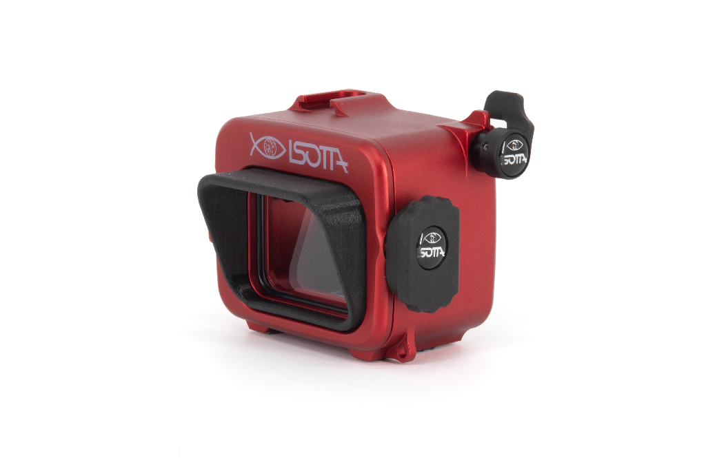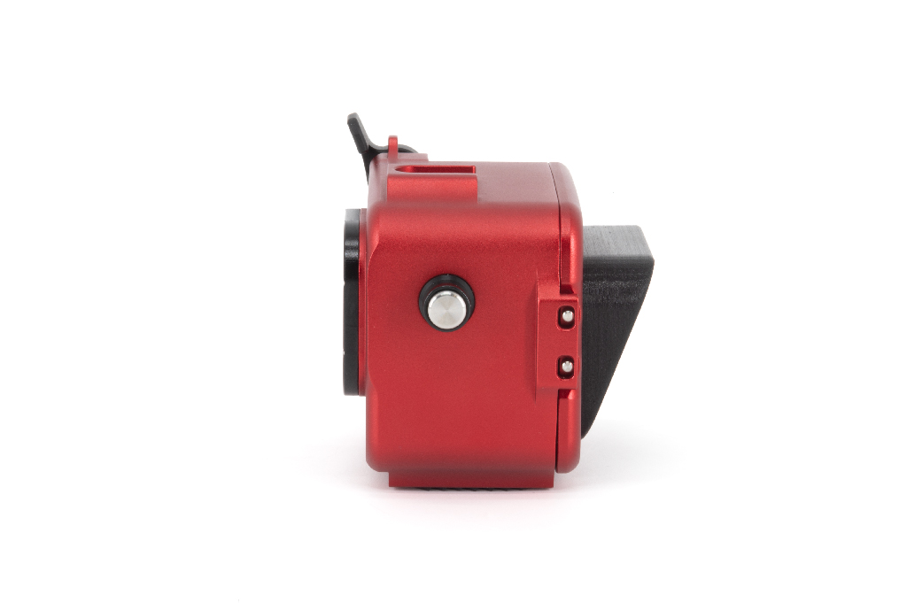 Carcasa profesional de alta resistencia fabricada en aluminio anodizado de color rojo, diseñada específicamente para las cámaras de acción Insta360 Ace Pro y Ace Pro 2. Este equipo permite una profundidad de trabajo de hasta 200 metros. La estructura cuenta con un cuerpo trasero totalmente desmontable del frontal, un pomo de cierre de seguridad manejable con una sola mano y botones de aluminio. Incorpora un cristal visor de gran tamaño para la pantalla trasera y doble junta tórica (O-Ring) en todos los botones y piezas extraíbles para garantizar la estanqueidad. Incluye una zapata fría superior para accesorios (luces de enfoque), así como orificios M6 y 1/4W en la base para montaje en trípodes o brazos. Sus pies están cubiertos de goma para asegurar la estabilidad en superficies diversas.