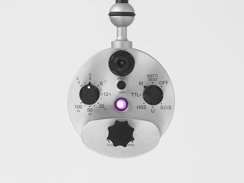 Flash de gama media de Retra con el mismo tubo de flash circular que el modelo Pro Max, pero con potencia reducida y sin pantalla OLED.