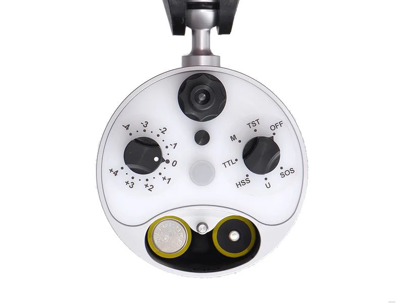 Flash submarino muy potente con Número Guía 46, diseñado para capturar sujetos a gran distancia con una salida de luz excepcional.