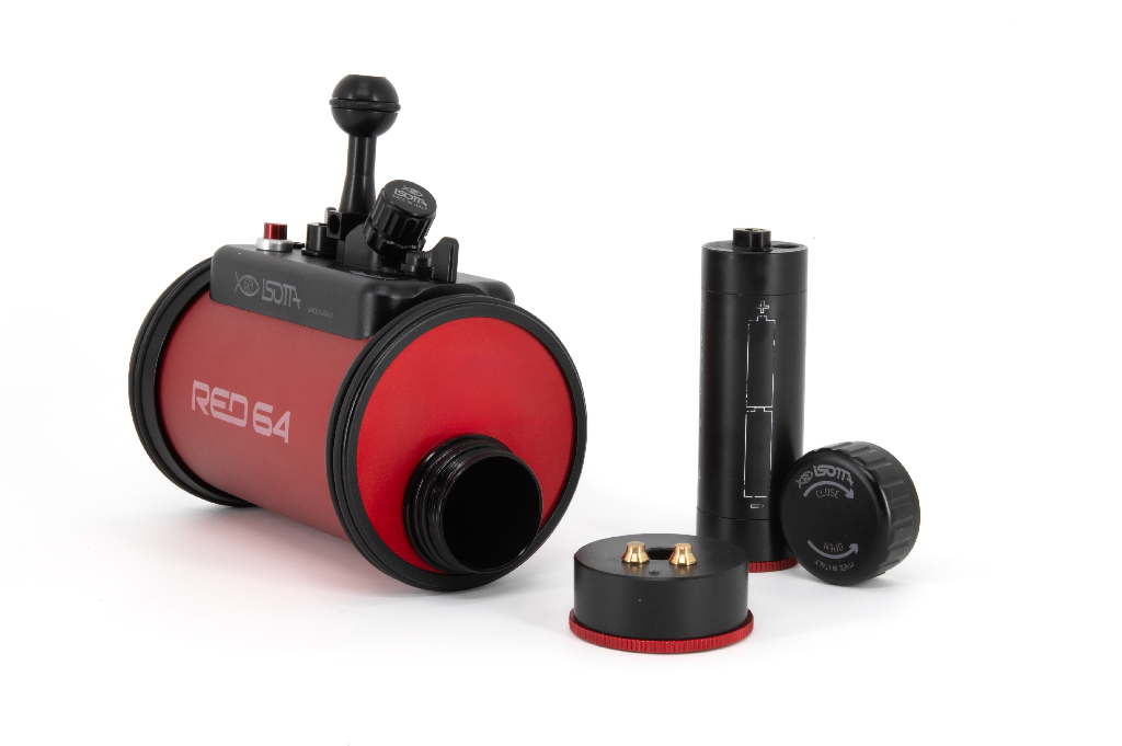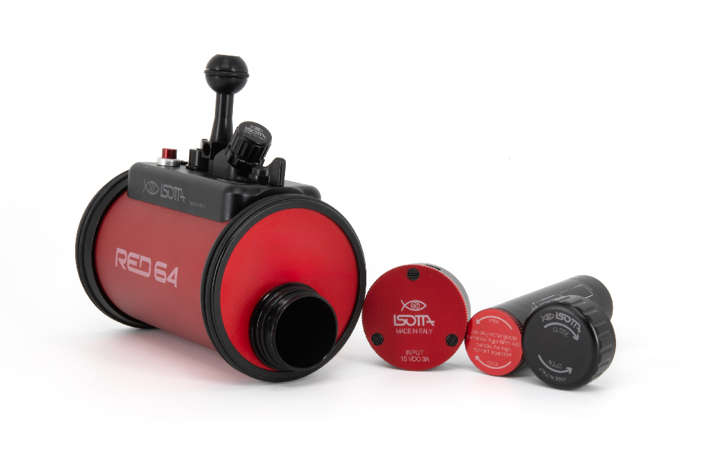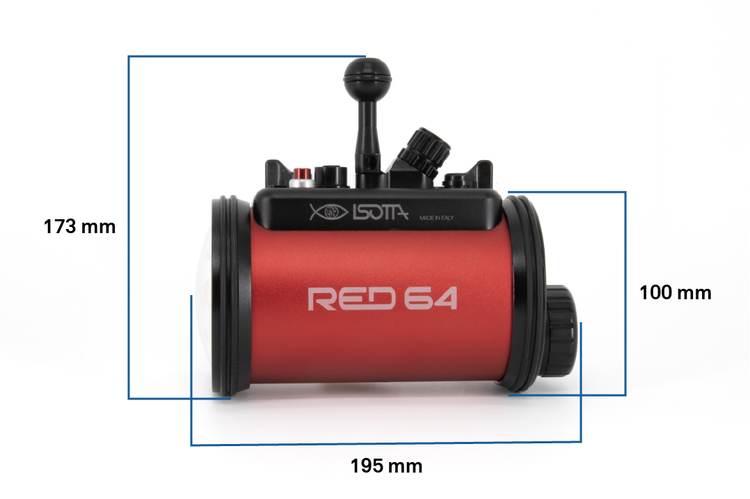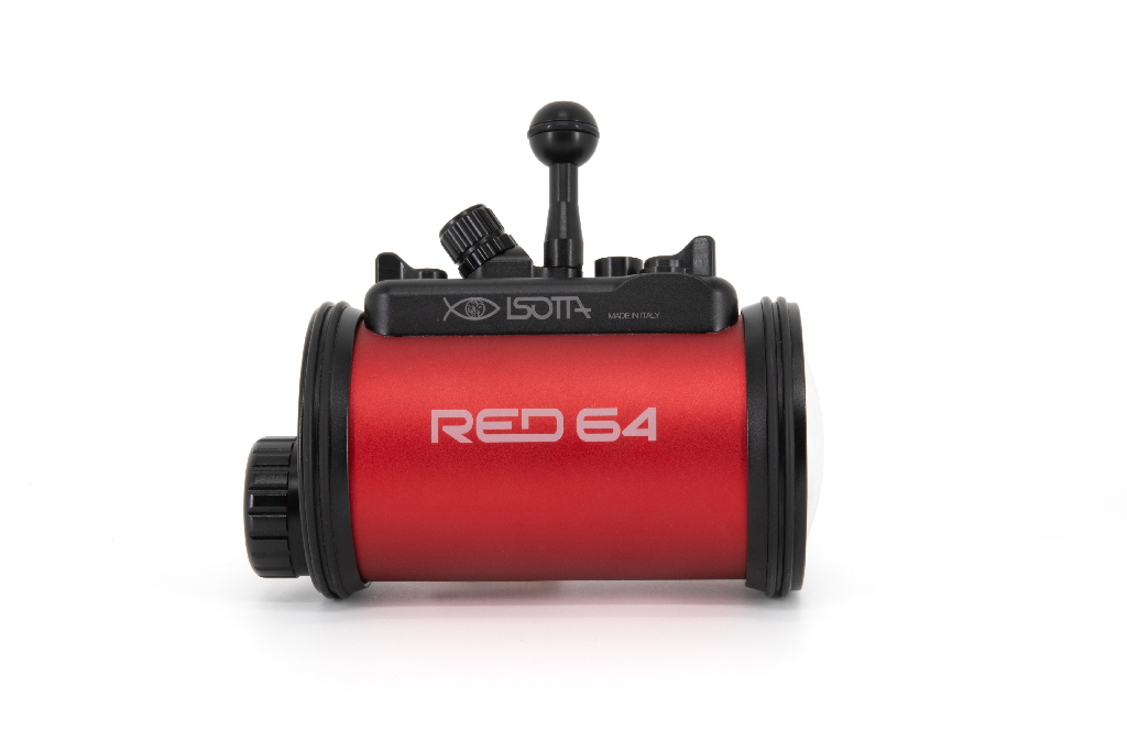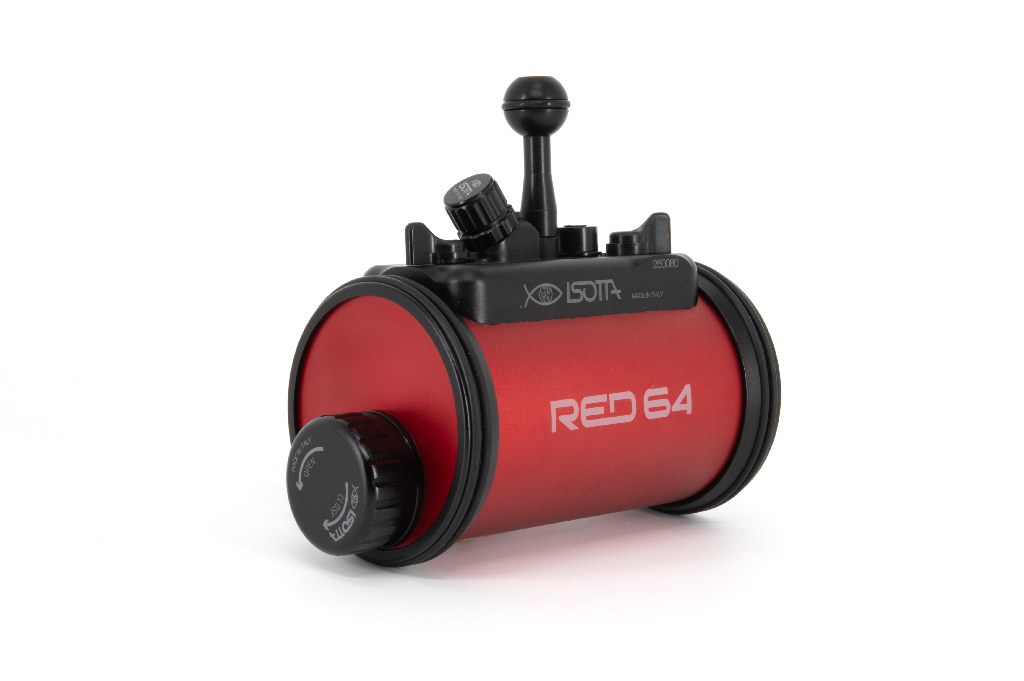 El estrobo RED64 de Isotta es un flash profesional para fotografía submarina de alto rendimiento con una potencia de 230 vatios y un número guía de 22 bajo el agua a ISO 100. Fabricado con un cuerpo de aluminio anodizado en color rojo, este dispositivo ofrece una gran durabilidad y resistencia. Cuenta con una velocidad de reciclaje de 3,5 segundos a plena potencia y es capaz de realizar disparos continuos de hasta 6 fps con un número guía 8. Incluye funciones avanzadas como sincronización de alta velocidad (HSS) para cámaras Sony, Canon y Nikon, 10 niveles de ajuste de potencia manual y una luz de enfoque ajustable (blanca o roja). Su diseño de doble junta tórica garantiza la estanqueidad hasta 100 metros de profundidad, manteniendo el compartimento de la electrónica seguro incluso si se abre el compartimento de las baterías.