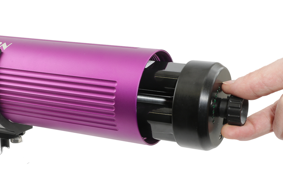 El foco funciona con tres baterías de 99Wh cada una. Se montan en una bandeja para formar un único pack de 297Wh fácil de usar. La bandeja puede intercambiarse en pocos segundos. Para el transporte aéreo seguro, las tres baterías pueden retirarse fácilmente y transportarse por separado para cumplir con el límite máximo permitido de 100Wh por batería. El cargador acepta de 110V a 240V AC.