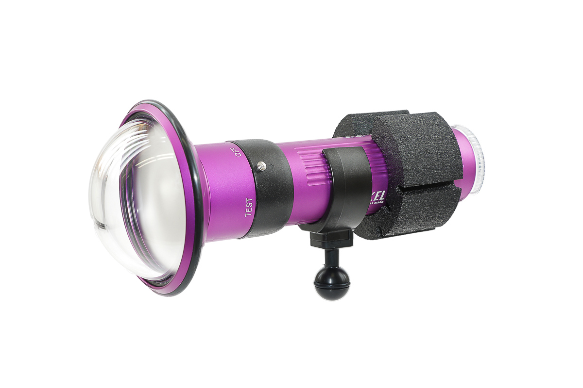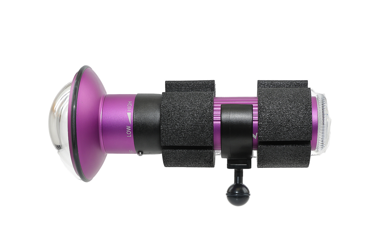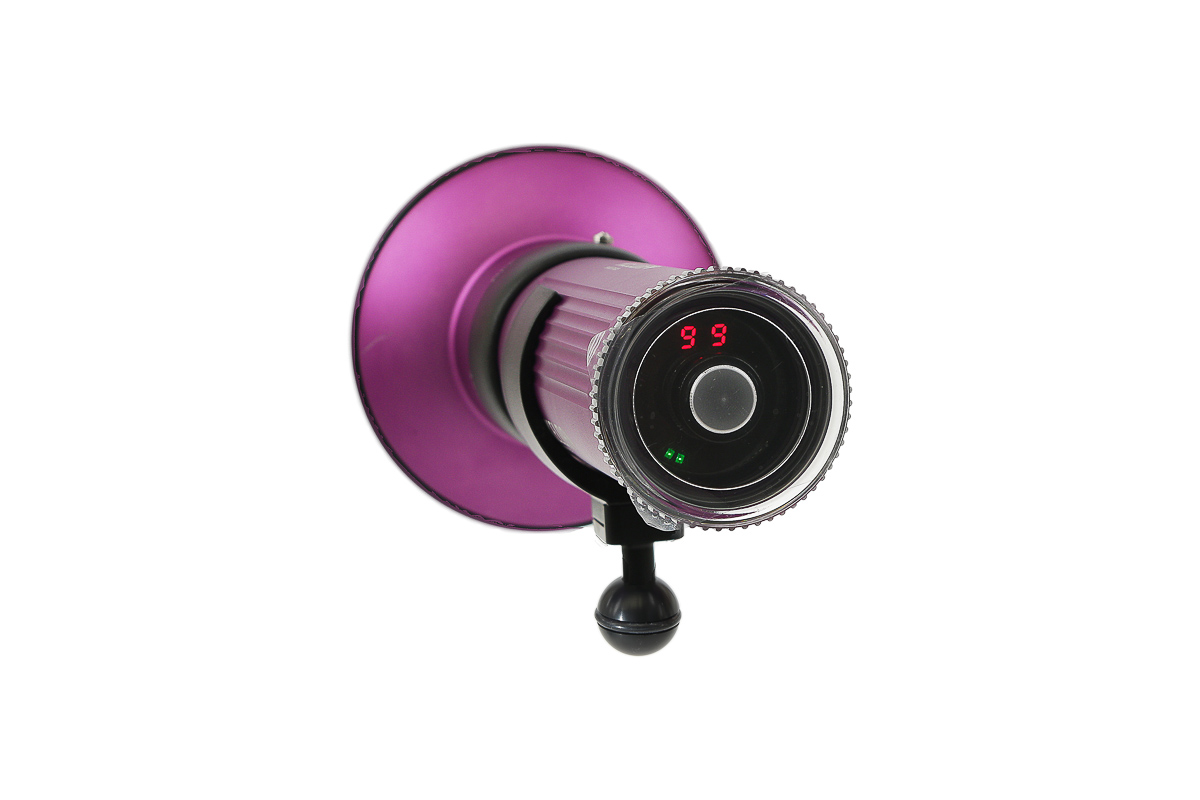 El diseño óptico único, con difusor y lente de cúpula, da como resultado un haz de 90° muy suave y amplio, tanto en tierra como bajo el agua. No presenta puntos calientes (hot spots) y los bordes son suaves.