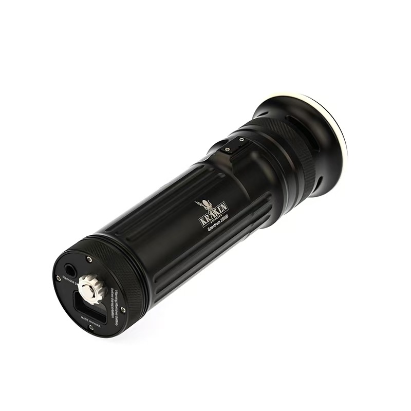 Spectrum 25000 es un foco de buceo de nivel profesional que ofrece una tonalidad de blanco ajustable por el usuario, representando una primicia en la industria. Diseñado para cineastas profesionales, cuenta con hasta 25.000 lúmenes y temperaturas de color seleccionables (5600K, 8000K y 16.000K), permitiendo iluminación gran angular de alta potencia con equilibrio ambiental sin filtros externos. Ideal para escenas de arrecifes, naufragios y encuentros con grandes animales marinos. Cuenta con interfaz de botones, diales y pantalla LCD para control preciso del brillo y temperatura incluso con guantes. Posee una apertura de 120°, compatibilidad con control remoto RC02 y accesorio de flotabilidad FB02.