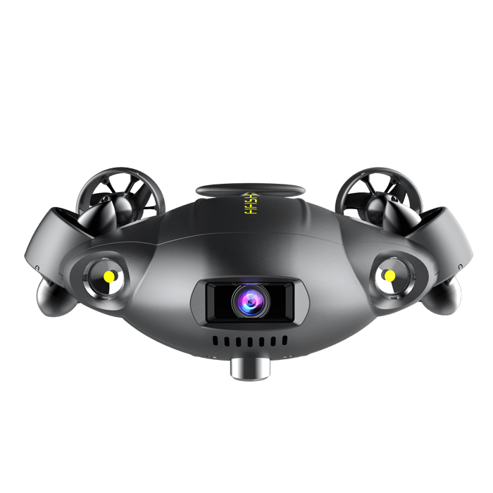 Dron submarino con cámara 4K a 60 FPS y movimientos de 360 grados. Incluye ranura Micro SD de acceso rápido en 3 segundos. Lente de 166° y luces de 5000 lúmenes. Autonomía de 4 horas.