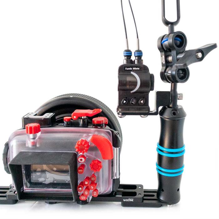 Ajusta la intensidad de tus focos Solar Flare y Smart Focus de Weefine con un sólo dedo. Ofrece hasta 10 posiciones de intensidad y una novedosa opción de apagado instantáneo (estado latente) para no afectar a tus fotografías. Permite configurar una o dos luces a la vez mediante canales independientes. Cuenta con indicadores LED azules de funcionamiento. Fabricado en policarbonato negro con tres terminaciones Whitworth 1/4″ en su base para adaptación universal. Especificaciones técnicas: Medidas 70mm x 45mm x 38mm, peso de 150g (con batería). El paquete incluye: control remoto WFA03, accesorio soporte de aluminio para base doble y batería CR123 de 3.0V.