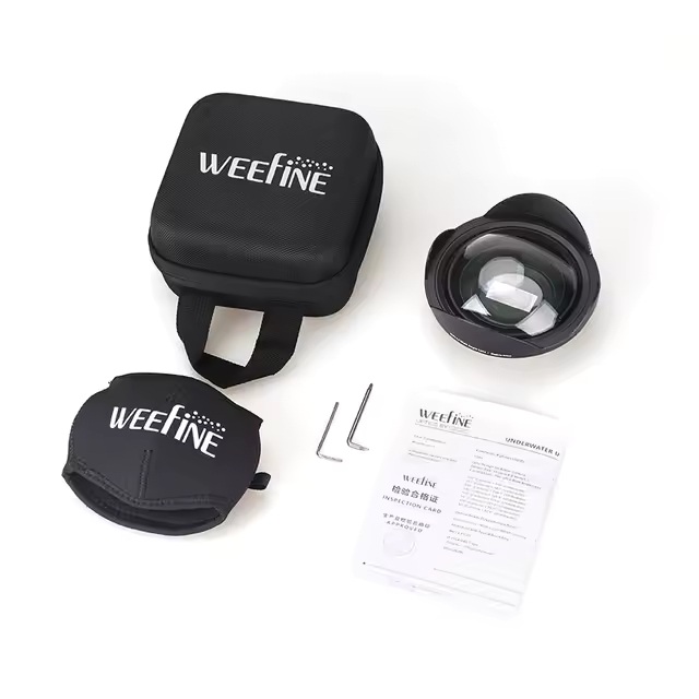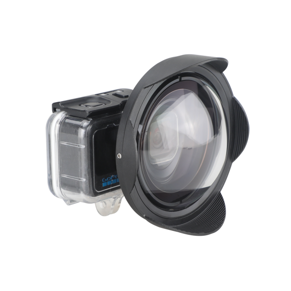 Cúpula gran angular WFL14 diseñada para usarse con cámaras de acción y teléfonos inteligentes con sensores de 1 pulgada. Este objetivo intercambiable mejora significativamente la calidad óptica, incluso cuando se usa el modo súper gran angular de las cámaras (156°). Ofrece líneas más rectas, mejor contraste e imágenes en general más impresionantes. Características técnicas: Construcción de 4 elementos en 4 grupos (3G1P); Aumento de 1,04x; Compatible con sensores de 1″ (13,2 mm x 8,8 mm); Lente ultra gran angular de 156°; Cúpula fabricada en resina de policarbonato de grado óptico; Vidrio óptico con recubrimiento BBAR multicapa; Cuerpo fabricado en Aluminio con anodizado tipo II; Rosca M67 x P0,75; Dimensiones Ø116 x 49,7 mm; Peso de 390g en aire y 250g bajo el agua; Sumergible hasta 80 metros. El pack incluye tapa protectora m67, funda de neopreno, estuche protector y manual.